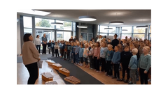 Trotz des kurzen Zeitraumes zwischen Sommerferien und Herbstferien haben wir am 17.10.25 eine kleine Ferienfeier in der Mensa stattfinden lassen. Es gab Gedichte, das Lied "Der Herbst ist da" haben wir mit musikalischer Begleitung durch die 1/2c gesungen und wir haben zum ersten Mal mit allen Kindern und Erwachsenen gemeinsam unseren Schulsong "Hoch im Norden" gesungen. Mit dabei waren auch einige Eltern. Der letzte Schultag ging mit viel Spaß zu Ende und wir hoffen, dass nun alle die Ferien genießen.